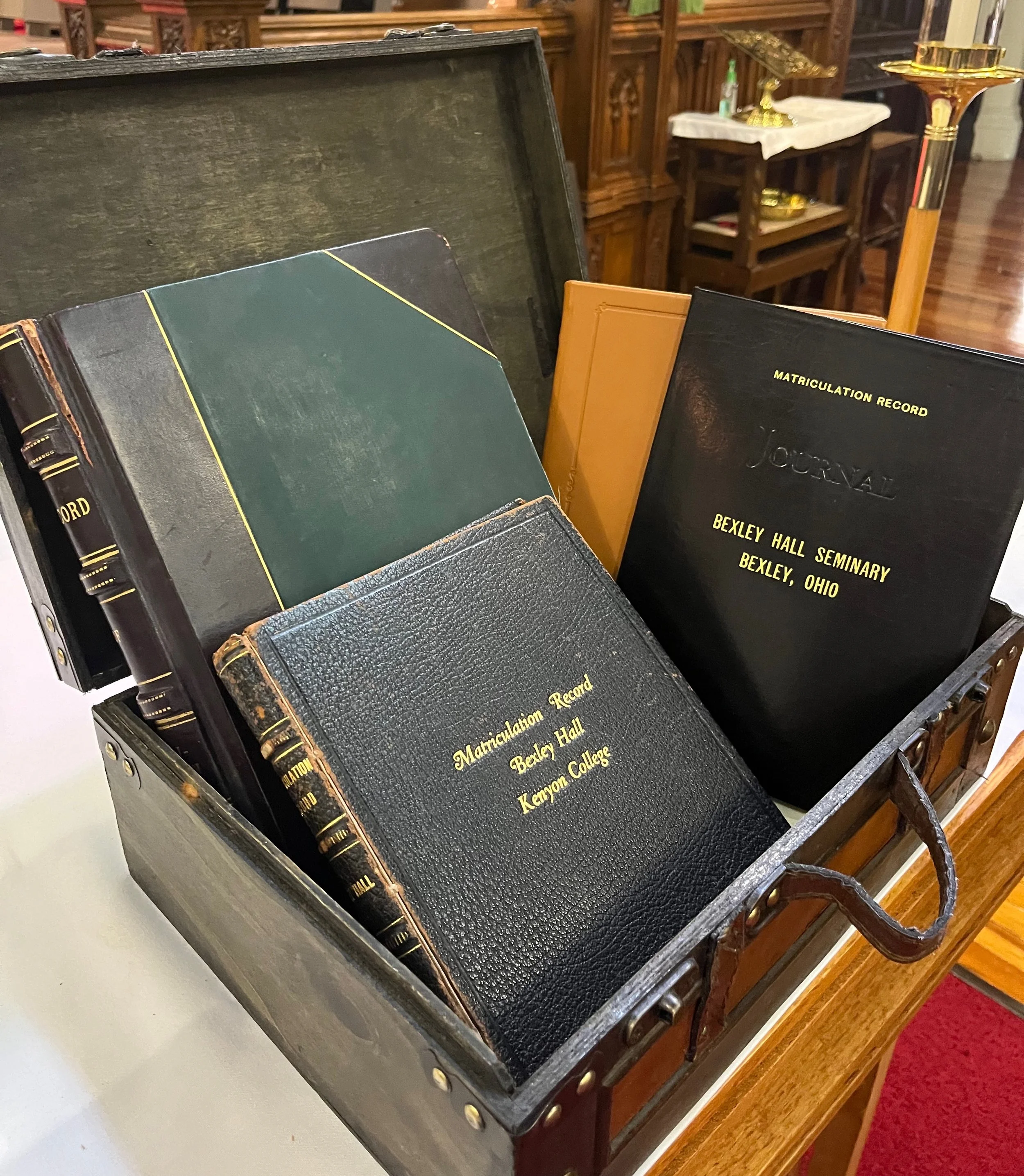 Signing a matriculation book when students begin their studies is part of a joyful service still practiced at many seminaries and colleges. This ceremony had of course been performed at our antecedent seminaries, Bexley Hall and Seabury-Western. After Bexley Seabury Seminary was born, a new Matriculation Book was created and added to those that came before, with all being safely stored between ceremonies in a Treasure Chest, as a new tradition was born, ritualizing the joining of the past to the future!